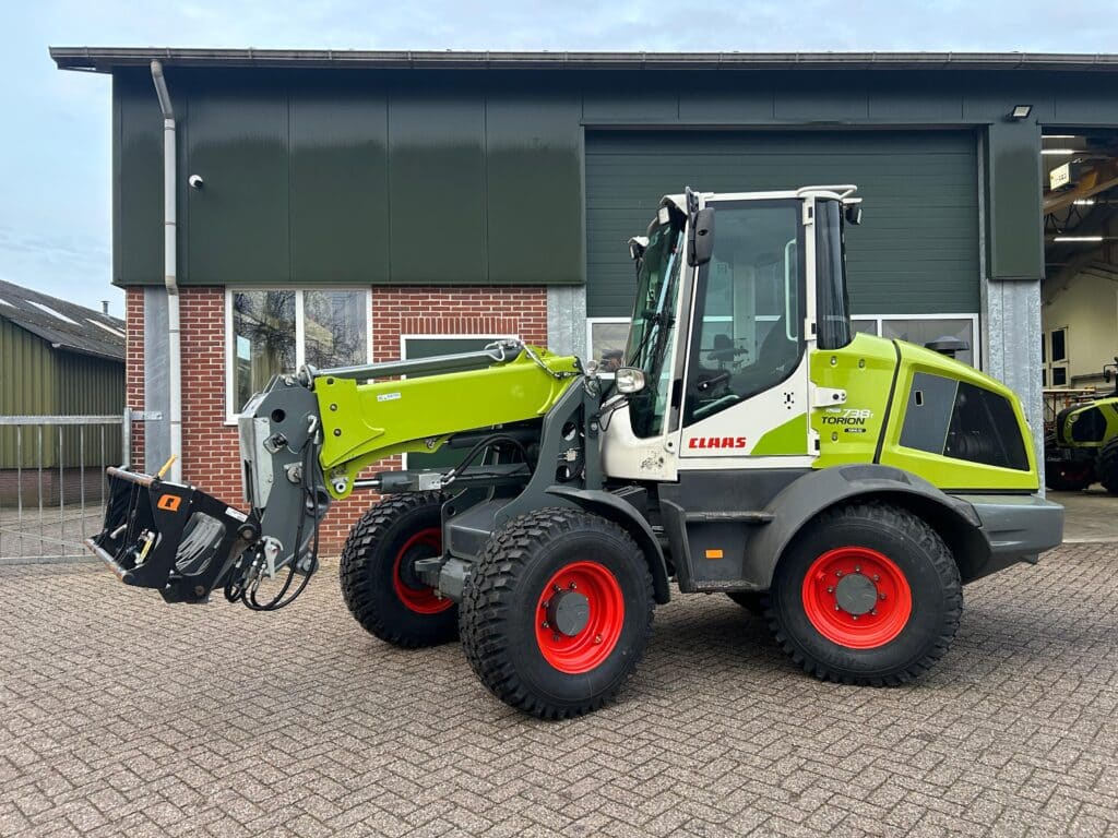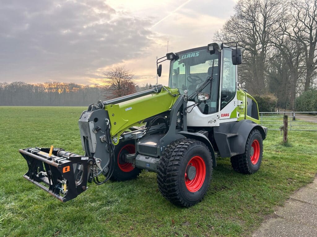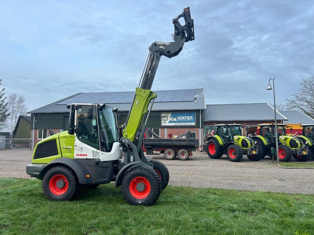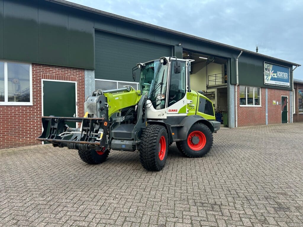 Deze Claas shovel is geproduceerd bij Liebherr. Deze machine is van zeer hoogwaardige kwaliteit en wordt gebouw in Oostenrijk. Deze uitvoering heeft een eigengewicht van 7 ton , en een kieplast van 3800 kg. Dit is een uitvoering met een tele giek. Hij is afgeleverd in Buurse en kan eenvoudig boven de mengwagen komen.